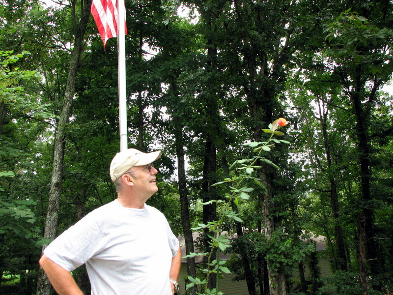 To put things in perspective in the photo above, I’m 6-foot four inches tall and am standing on the same level as the rose bush. And I’m looking UP at the blossom. That rose wanted sunshine and was going to get to it.