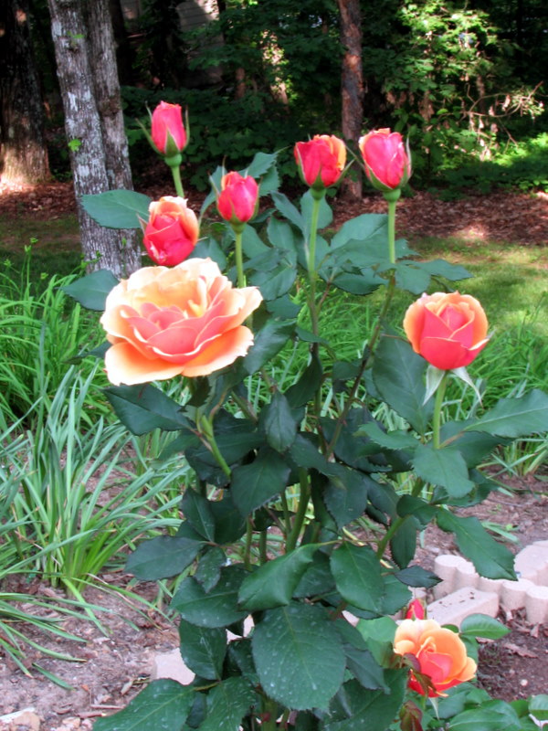 Roses need sunshine. Roses love sunshine. Since we have lots of trees around our house, finding enough sunshine for our roses has been somewhat of a problem. We had to move our roses from the first bed we made because there was too much shade, but now we’ve got them in front of the house where they get as much sunshine as our yard can offer.