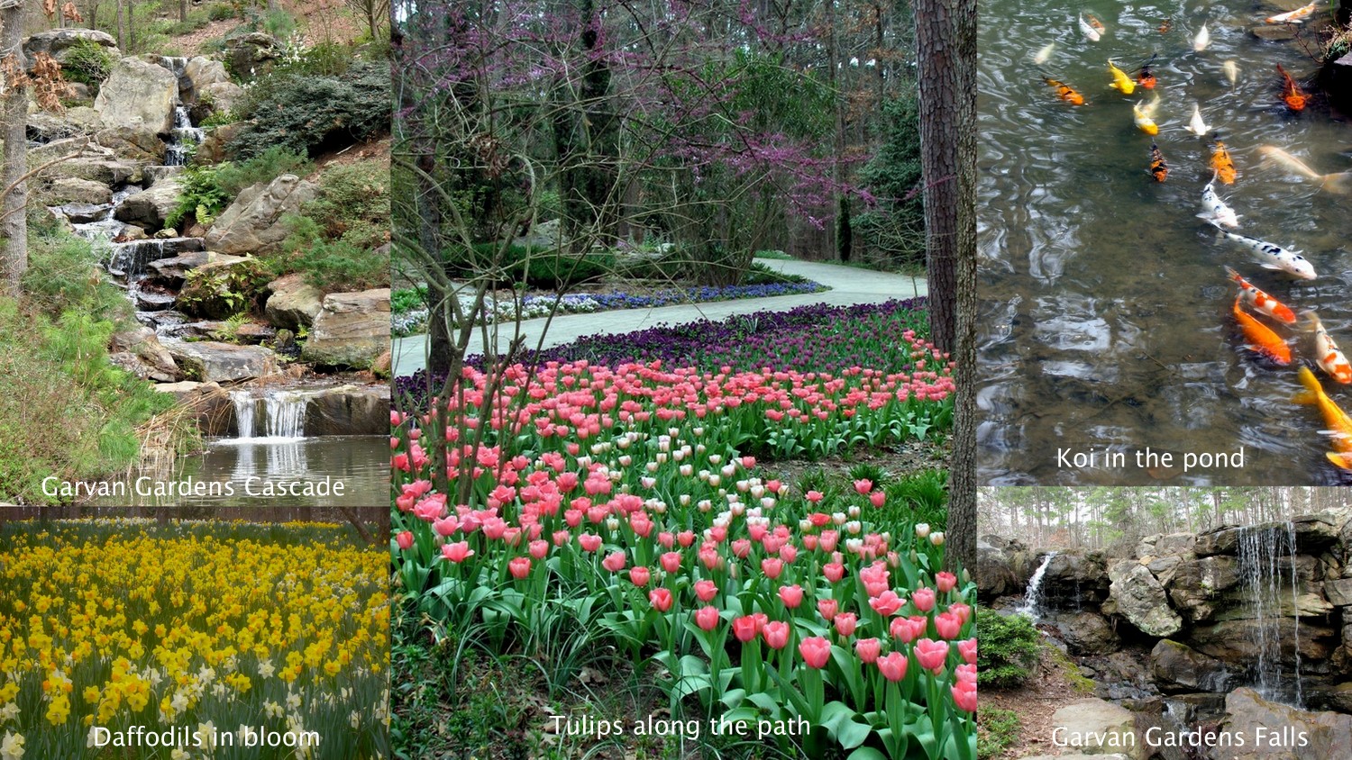 We found the waterfalls we were looking for — and much more.  The spring flowers were in full bloom and could be seen from many different places within the garden.  We spent a couple of hours walking through the different sections of the garden and enjoying the sights.