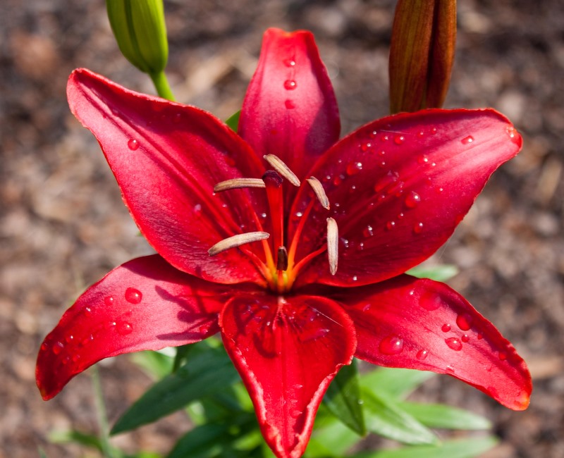 I tend to like bicolor roses. Ronald Reagan is a pretty red-and-white rose that blooms in the new flower bed in front of the house.