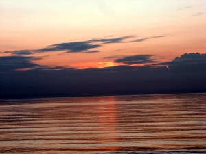 We celebrated Betsy’s birthday last year by going to Ormond Beach, Florida. We had a room that overlooked the ocean and got up early on the day of Betsy’s birthday to see the sunrise. The sea was calm, and just before the sun popped out of the clouds offshore, the water took on a golden sheen.