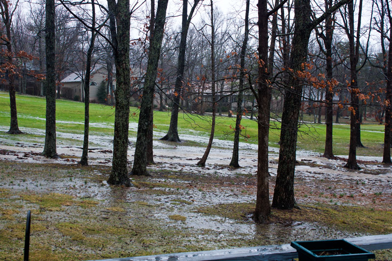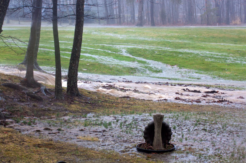 All of that changed Sunday night and Monday. It rained and it rained and it rained. The picture above was taken from the deck in the back of our house and shows the fairway about noon on Monday. I don’t think there were any golfers out.