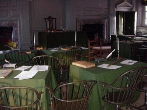 The room in Independence Hall, Philadelphia, where the Declaration of Independence was adopted.