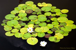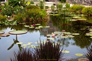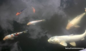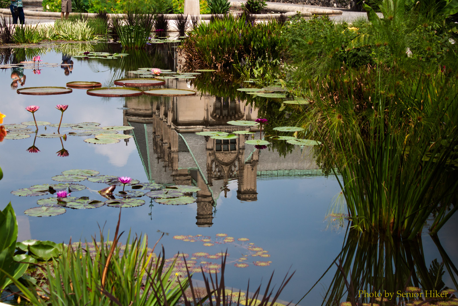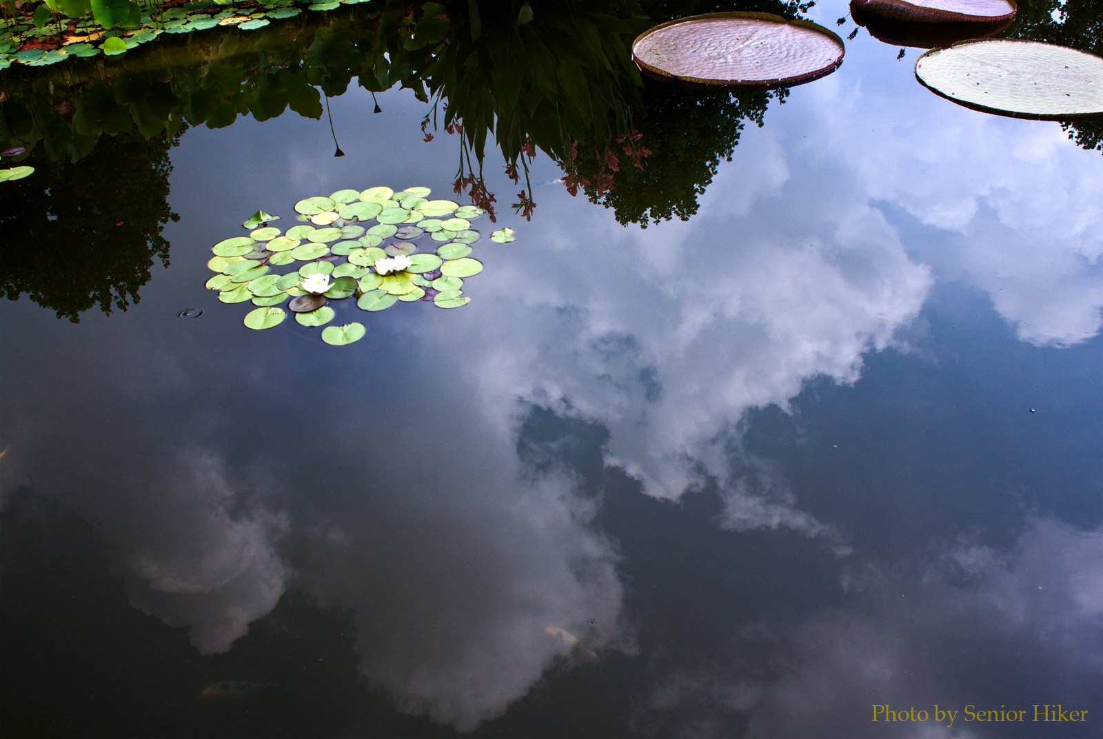 The Italian Garden is a water garden with three pools filled with water lilies like the ones above. The pools also contain Koi, which Betsy captured along with a reflection of the cloudy sky.