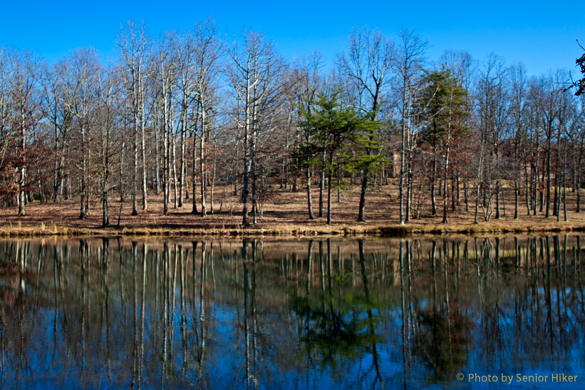 It was harder to get to the Lower Waterfall on Falls Run. This waterfall is about 30 feet high, but I could never get a clear view of either the very top or the very bottom. This was the best I could do by shooting through a narrow space between two boulders.