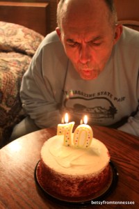 Betsy got this cake and candles so we could celebrate my birthday in our room at Blackwater State Park Lodge. March 9, 2012. (Photo by Betsy).