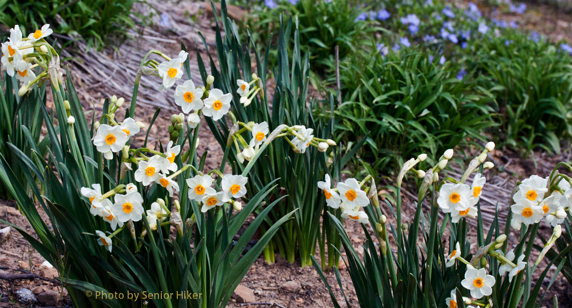 Mount Hood is another daffodil with large blossoms, but these have white petals and a white trumpet. This is another daffodil we’ve had for quite some time.