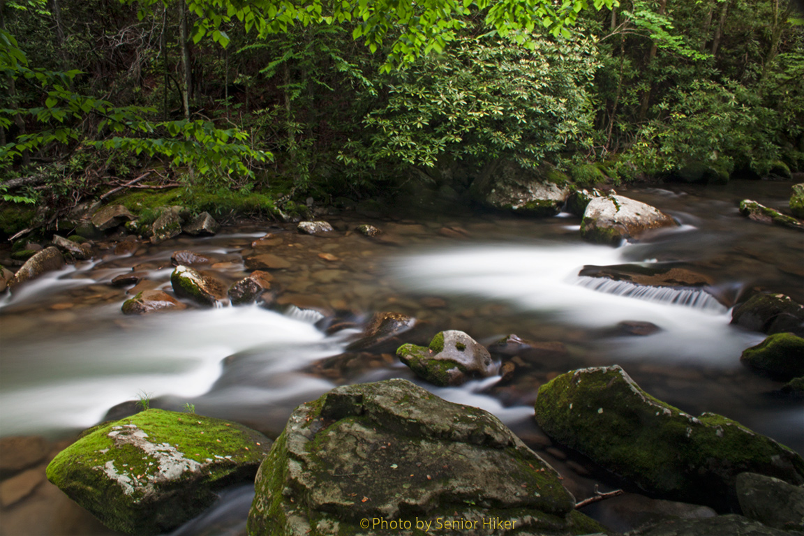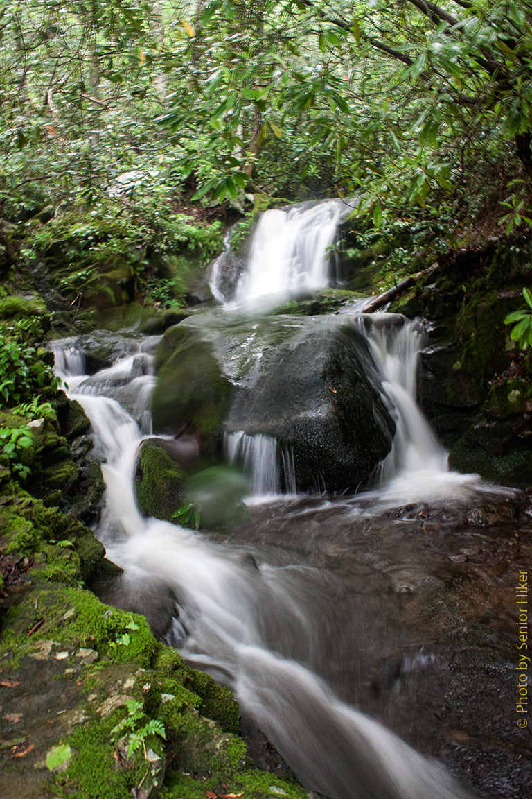 We had to take our car into Knoxville for servicing in late May, so we made an early morning appointment so we would have most of the day for a visit to the Smokies. We decided to hike to the Little River Trail from the Elkmont Campground. The trail follows the river and leads to Husky Branch Falls.
