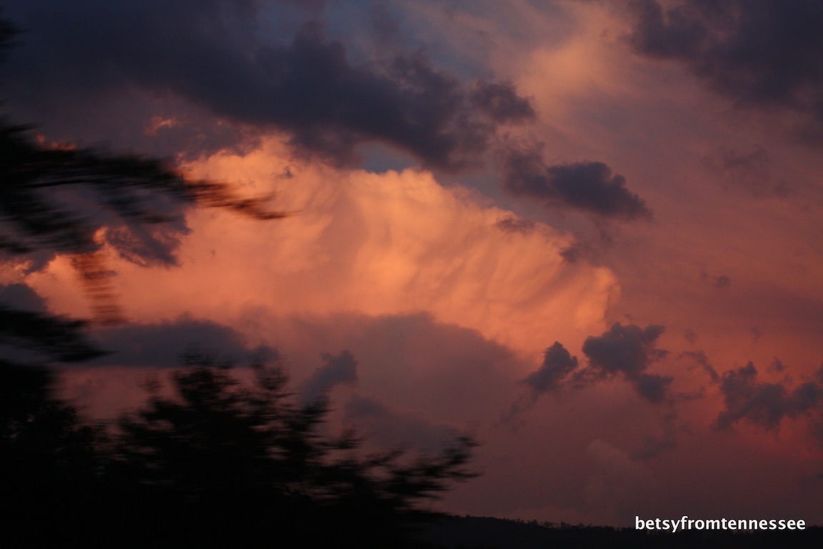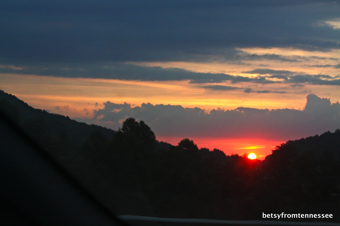 Even after the sun dropped below the horizon, the clouds were still a beautiful red-gold. It’s hard to believe that Betsy got all of these pictures from a moving car on the interstate.