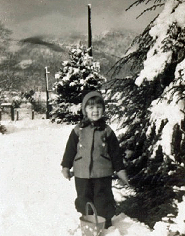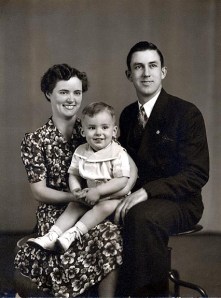 Dad met Mom in 1937 when he was in the CCC, but they had to wait until Mom was 20 in 1940 before they could get married. They had their first child in 1942 (it’s been a long time since I had that much hair!).