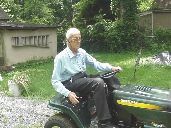 Dad’s love of gadgets and learning things remained strong through the years. He taught himself to use a computer when he was 90. By the time he was 94 he decided he was too old to mow the lawn with his walking mower, so he got this riding tractor so he could continue mowing his own lawn.