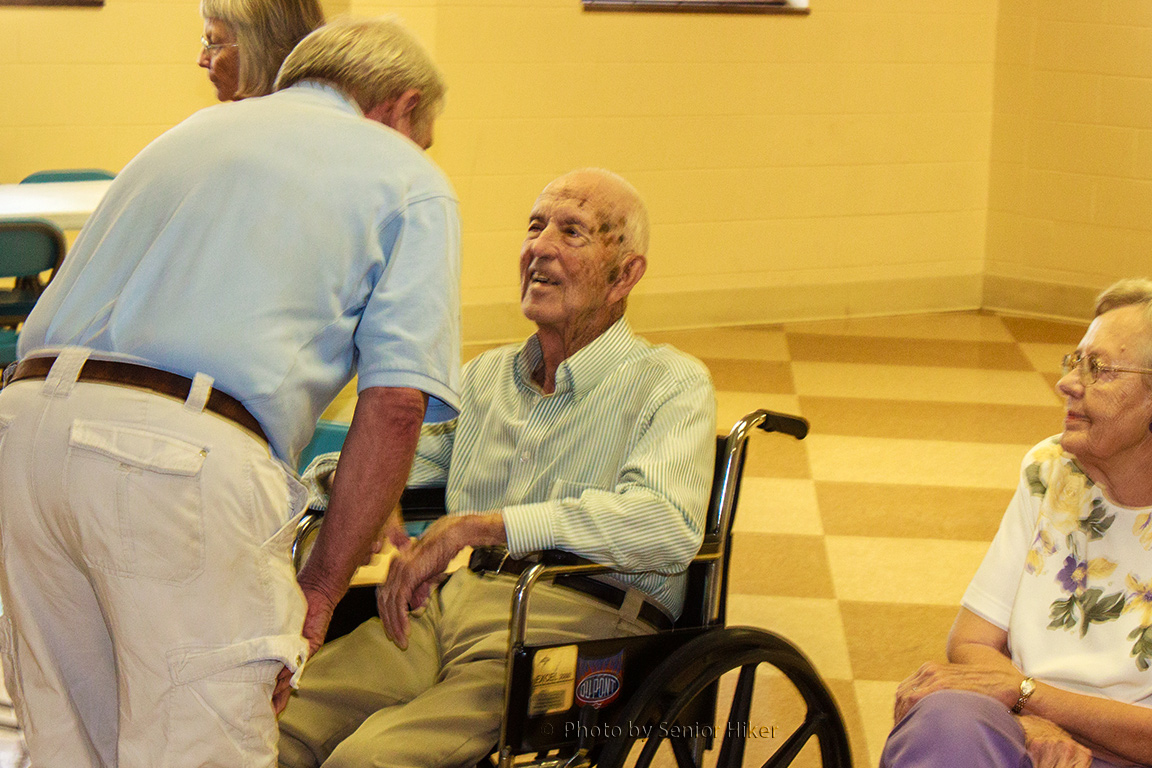 We celebrated Dad’s birthday a few days early with a reception at his church in Hendersonville, Tennessee. Quite a few friends from the church — as well as family members — came to see Dad and wish him a happy birthday. In the picture above Dad is talking with a church member he hadn’t seen in over a year. The woman on the right is his niece, who came down from Indiana with her family to see Dad.
