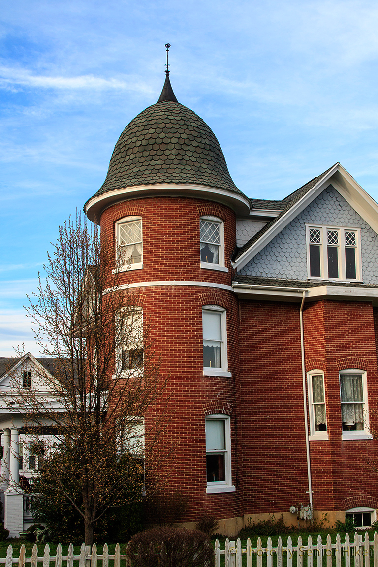 The brick turret of the home above caught my attention. This was the home of Dr. F. E. Grove, and when built around 1910 was the first Strasburg home built with electricity, indoor plumbing and central heat.