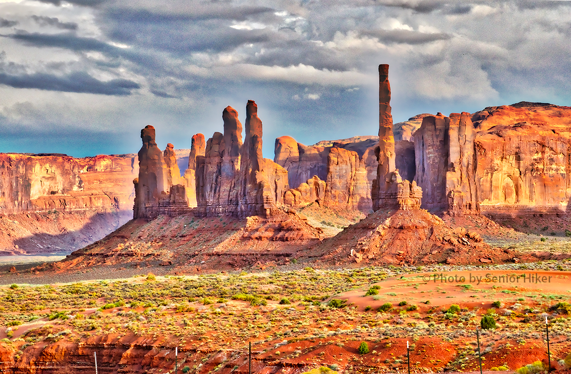 The picture above shows Totem Pole, the tall spire on the right. The rock formation on the left is Yet Bi Chei, (Navajo spiritual gods).
