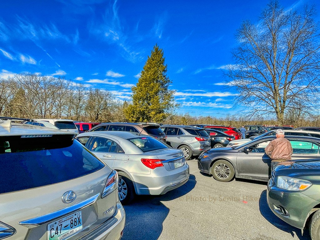 It took a little over an hour to get into the fairgrounds where we directed to a parking lot and told to wait for further instructions. The parking lot is where these pictures were taken. Please remember that most of the people in these cars were 75+ years old. Oh, and another thing — there were no bathroom facilities open in the area where we were waiting.