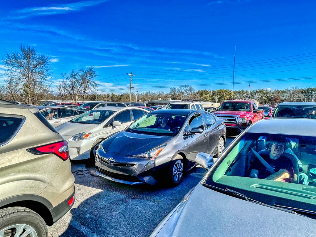 So we waited … and waited … and WAITED. Finally, about 2 o’clock we were directed to the line leading to the vaccination station. For the most part this line kept moving (slowly), but it still took close to an hour to get to the stations where we received our shots. The shots were given while we were in our car, so that part worked out very well.