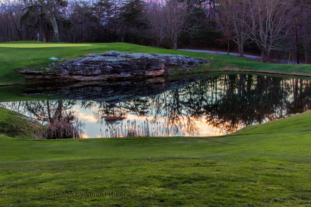 I walked the back nine of the Druid Hills golf course early one January morning and got this picture of a pond on the fourteenth hole. I like the way the water in the pond reflected the trees and the morning sun. Such a sight made getting up early in the morning more than worth while.