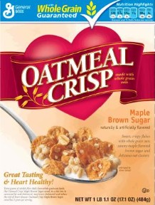 A year or so ago Betsy and I decided we needed to eat more oat cereal as part of our cholesterol-fighting regimen. We found a cereal we really like — Maple Brown Sugar Oatmeal Crisp. The nutritional label had all the right numbers and the flavor was very good. We happily added it to our daily cereal mix.
