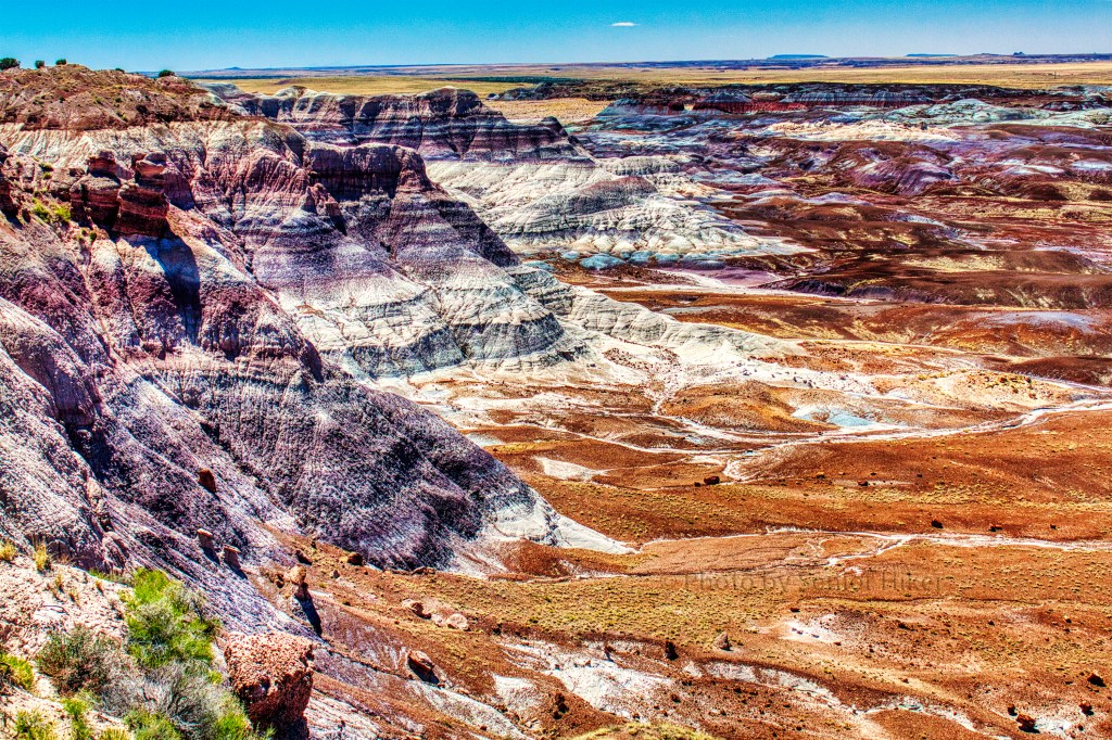 Betsy and I made our first trip out west in 2011. Among the national parks we visited was Petrified Forest National Park in Arizona. We found the badlands in the Blue Mesa portion of the park to be both forbidding and beautiful.