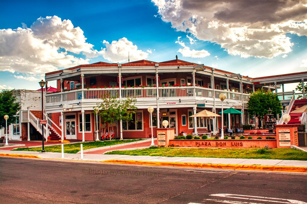 During our first western trip in 2011, Betsy and I walked around an Albuquerque, New Mexico, square on a late afternoon in June. Many of the sights reminded us of settings we’d seen in western movies and television shows. I found the second floor balcony of a building in this plaza to be very pretty, so of course I took a picture.