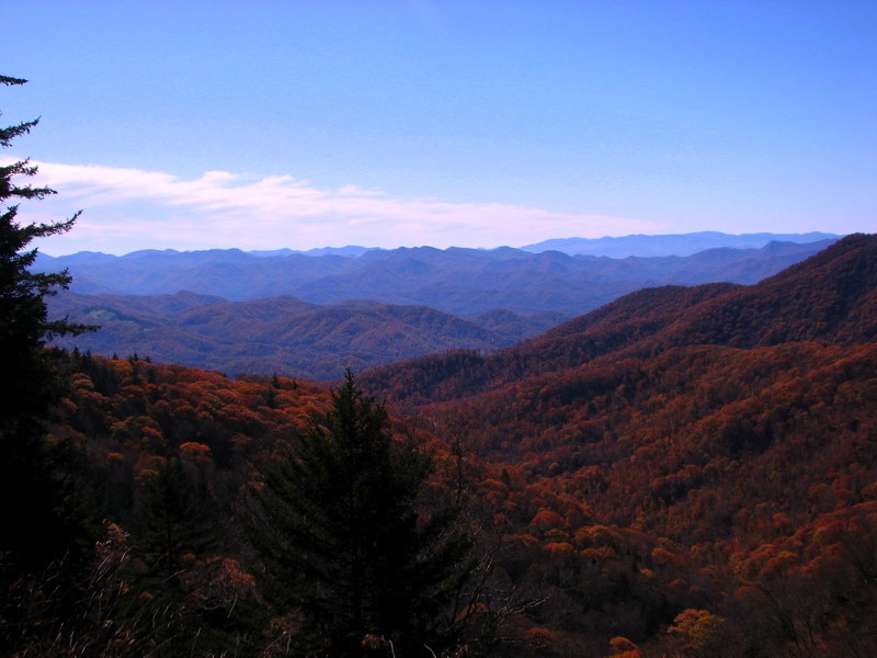 As we headed down the mountain in North Carolina after passing Newfound Gap, we stopped at the Webb Overlook, where the trees were mostly yellow and orange.