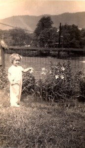 Dad met Mom in 1937 when he was in the CCC, but they had to wait until Mom was 20 in 1940 before they could get married. They had their first child in 1942 (it’s been a long time since I had that much hair!).