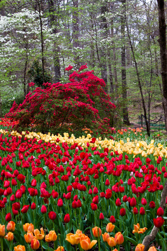 Tulips and Azalea in bloom, Garvan Gardens, Hot Springs, Arkansas. March 28, 2011.