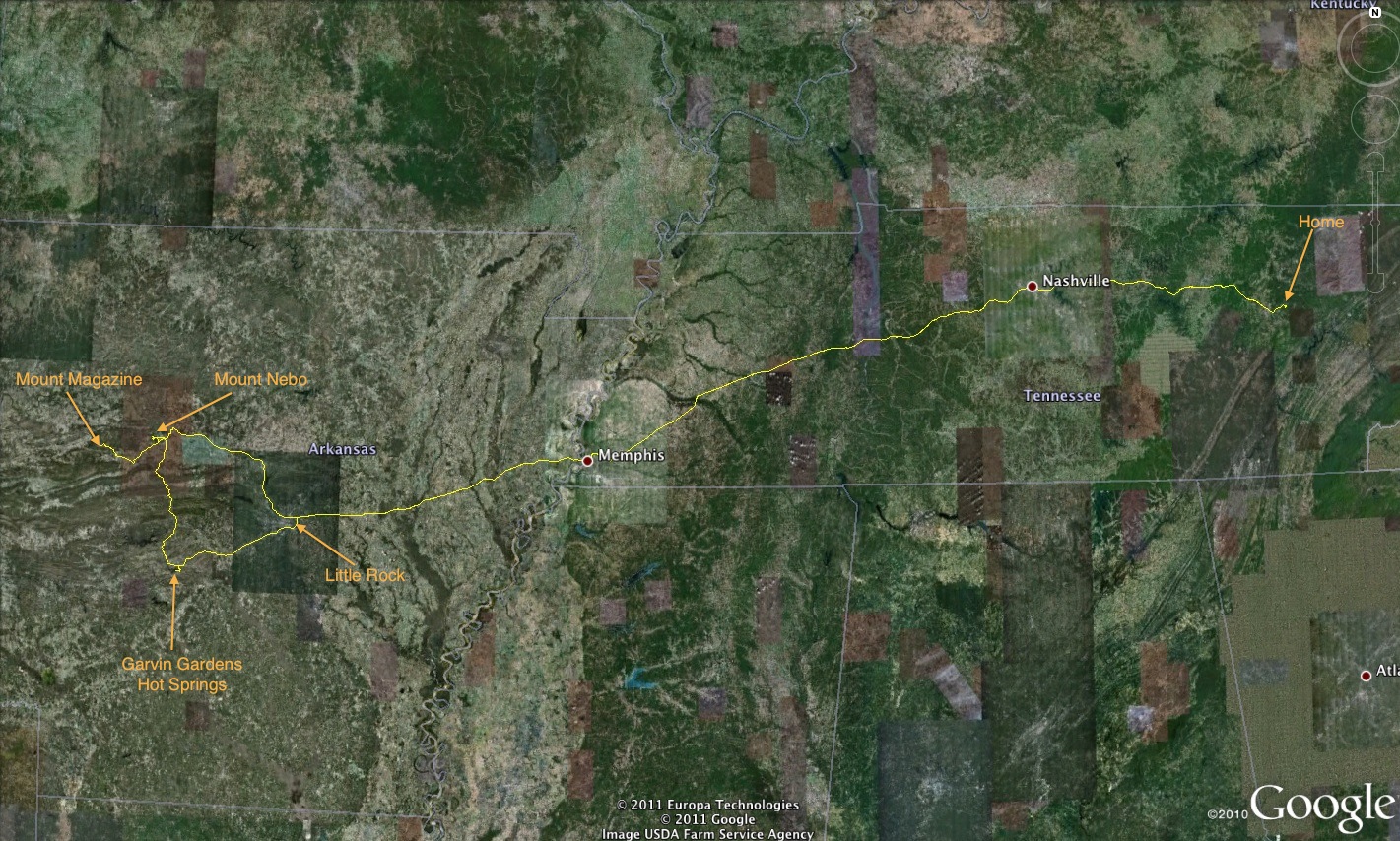 Since we now have a geo-tracker that we take with us just about every place, I can show you are journey thanks to Goggle Earth. You can click to enlarge the map for easier reading.