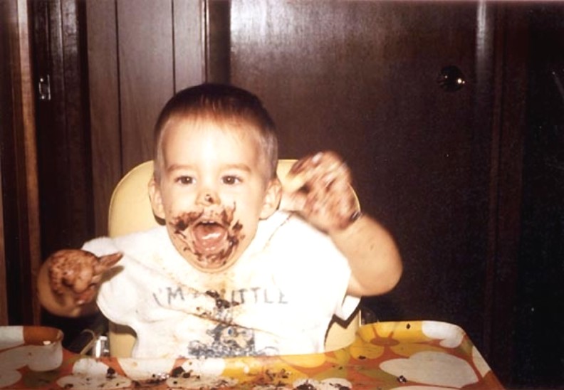 Kelly enjoying her chocolate birthday cake. Montreat, NC, January 1, 1973.