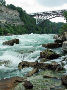 There were all kinds of activities going on around the main entrance to Niagara Falls State Park, so we did not attempt to get to the American falls. Instead we drove onto Goat Island in the Niagara Rivers and walked to Three Sisters Islands. Three Sisters is land donated to the state by a man who had three daughters.